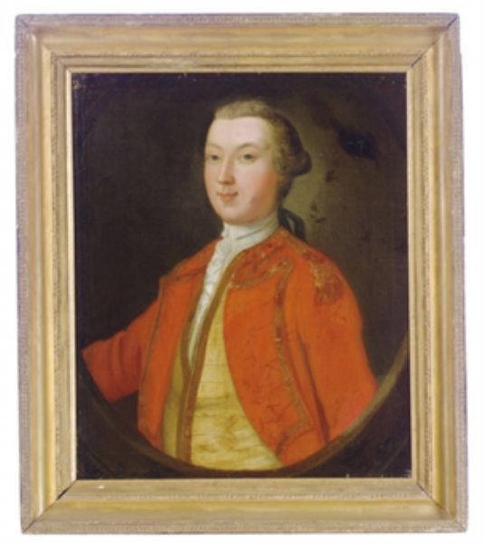 | Portrait of an officer, three-quarter length in a red tunic, in a painted oval | |