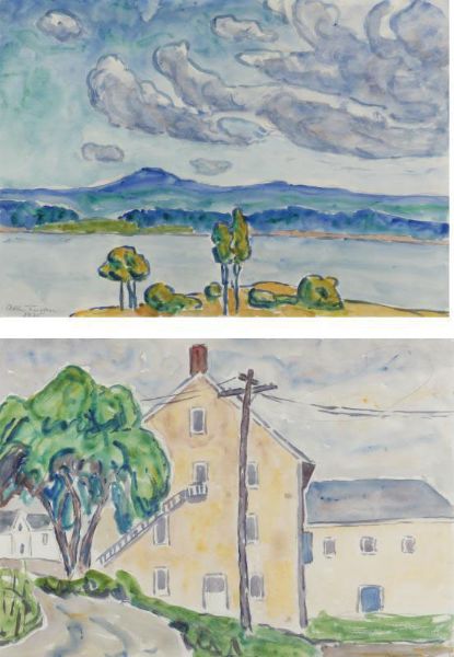 | LANDSCAPE WITH LAKE AND MOUNTAINS AND LANDSCAPE WITH HOUSE AND TREE: A PAIR OF WATERCOLORS | |