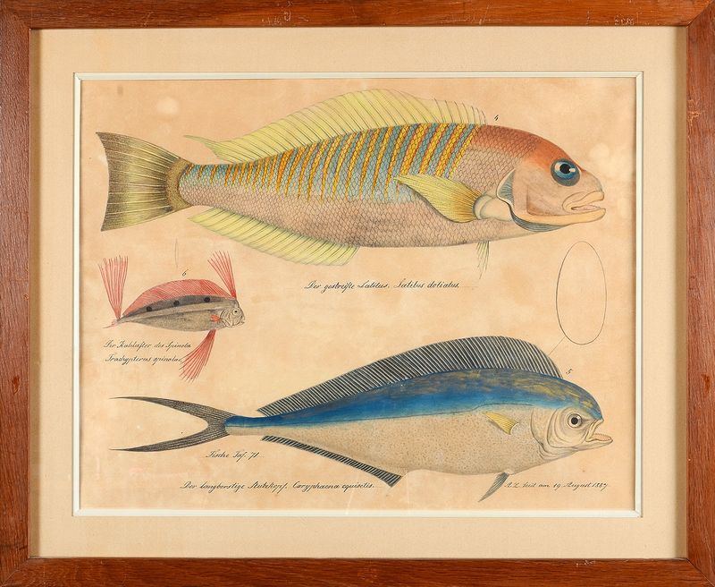 Planche avec trois études de poissons