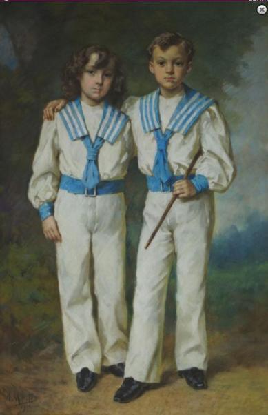 | Portrait of two boys standing full-length in sailor's costumes | |