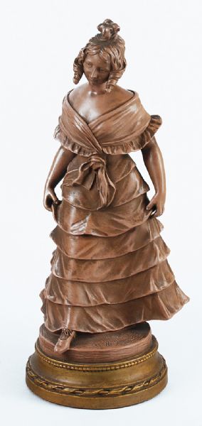 Figurka kobiety w sukni z falbanami