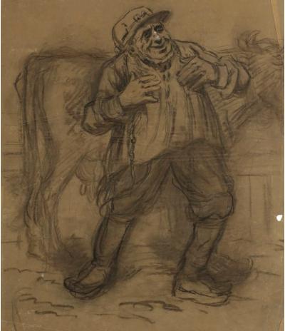 Marchand de bestiaux devant sa vache.