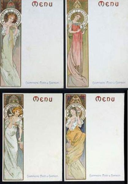 Suite de quatre menus pour le champagne Moët & Chandon