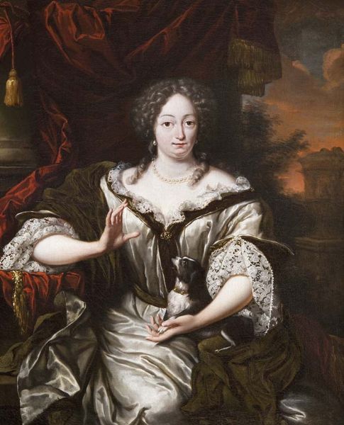 Höfisches Damenbildnis mit Perlensshmuck und Schoßhund