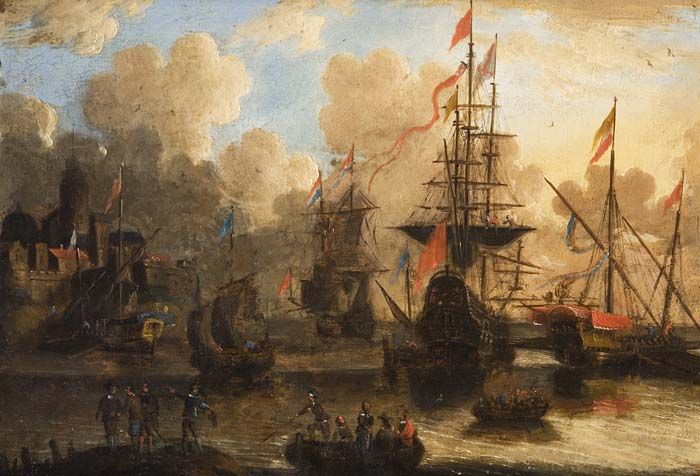 Zahlreiche Schiffe und Boote vor einer Stadt-Silhouette