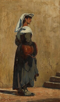 An Italian woman carrrying a waterjug