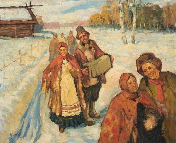Scène de neige et musiciens.