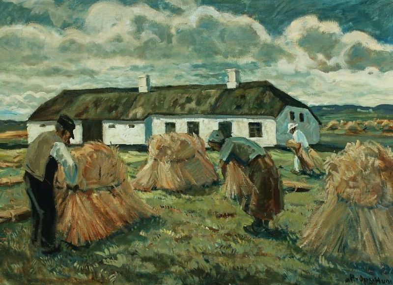 Landscape with farmer making sheaves