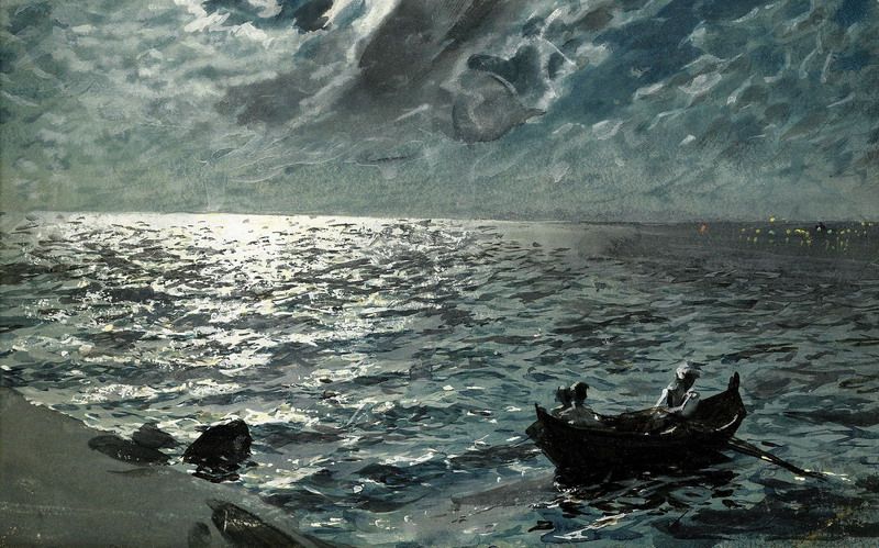 Bukten vid St. Ives i månsken