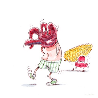 | Original drawing for “Tre fantastiske eventyr om Røv - verdens sødeste bagdel” | |