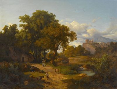Ideale italienische Landschaft mit bäuerlicher Figurenstaffage