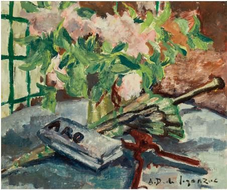 | Nature Morte Avec Pivoines, Ombrelle et Figaro | |