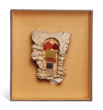 assemblage de liège, verres colorés et technique mixte monté dan | |