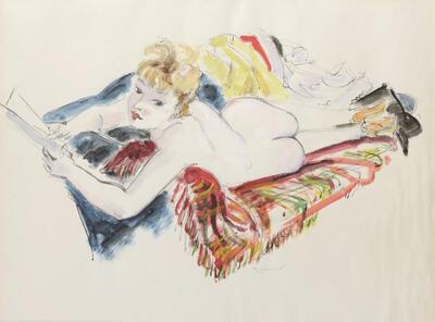 | Femme nue couchée sur un divan et lisant un livre | |