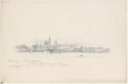 Vue de l'ile de Wassiljewski sur la petite Néva à Saint Petersbourg