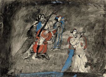 Gouache pen and brush and ink on paper
