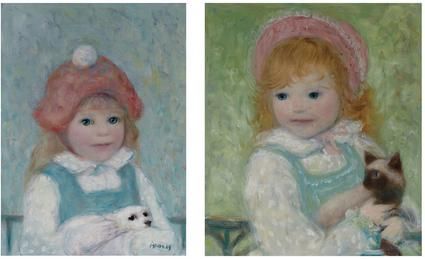 Young Girl with Her Dog and Girl with Cat: Two