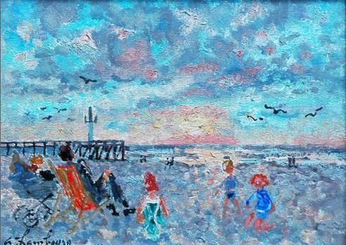A La Maree Haute a Honfleur; Fin du Jour Sur La Plage