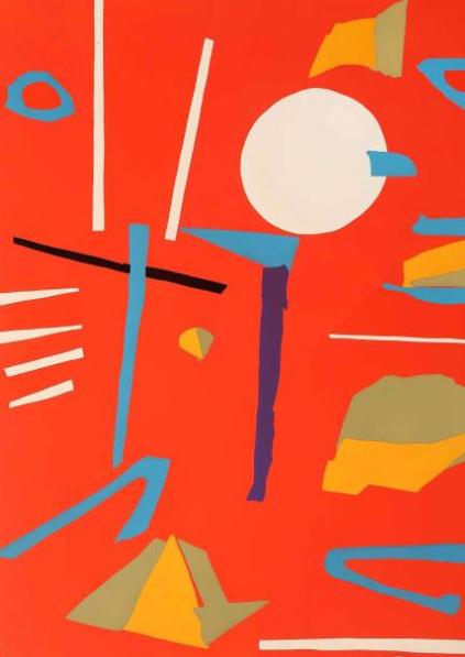 | Composition fond rouge et cercle blanc | |
