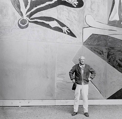 Picasso in front of 'La Chute d'Icare', Vallauris