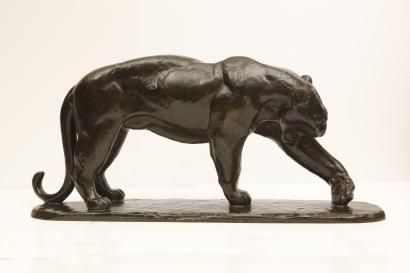 Panthère se léchant la patte