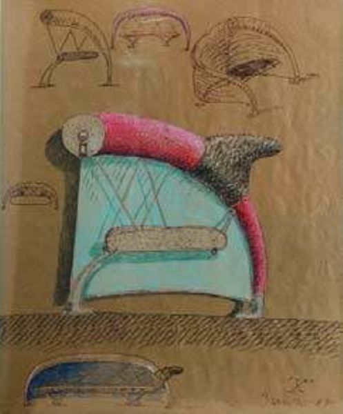 Disegno di progetto per il divano Axale per Cassina, 1987