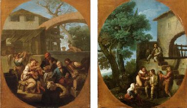 | Contadini con suonatore di mandolino; e Contadini con suonatore di cornamusa | |