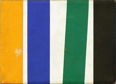 Geometrische Komposition in Blau, Weiß, Grün, Gelb und Schwarz