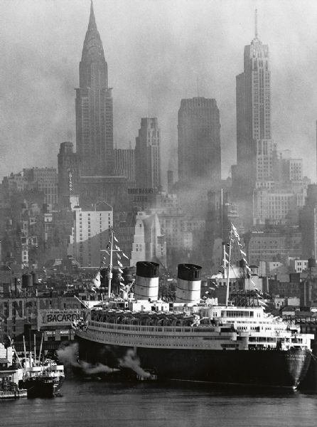 Queen Elizabeth in New York Harbor.