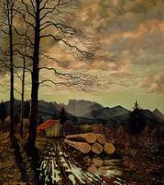 Baumstämme in herbstlicher Vorbeirgslandschaft