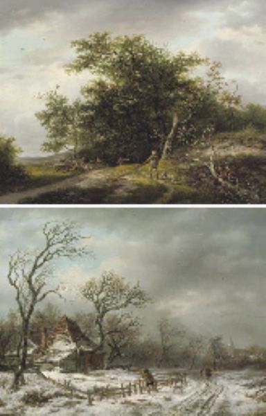 | Along a country track in winter; and Sportsmen by a forest edge in summer | |
