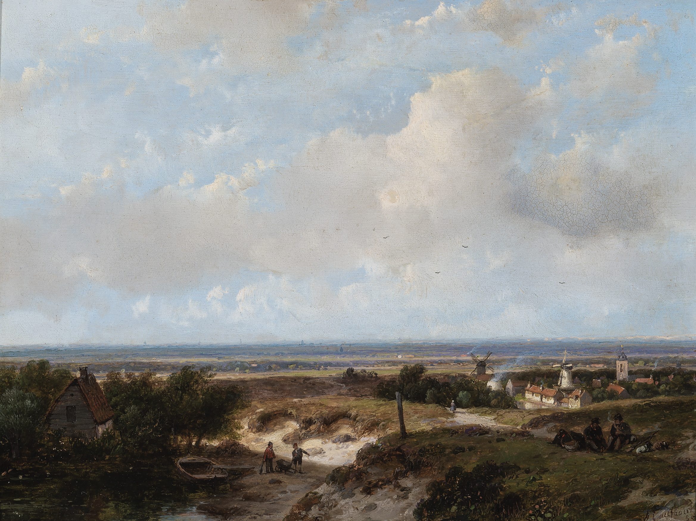 Panoramic Summer Landscape near Haarlem (1855) Signed and dated 55 lower right Oil on panel, 22.1 x 29 cm Provenance: Private collection, the Netherlands Note: The landscape painter Andreas Schelfhout from The Hague had a penchant f | |