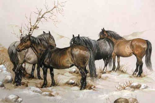 Fell ponies in the snow