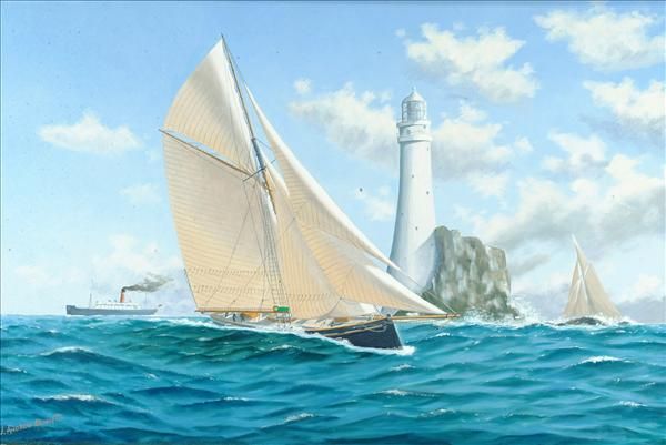 | 'Jolie Brise, three times winner of the Fast Net Race, rounding Fast Net Light, 1929' | |