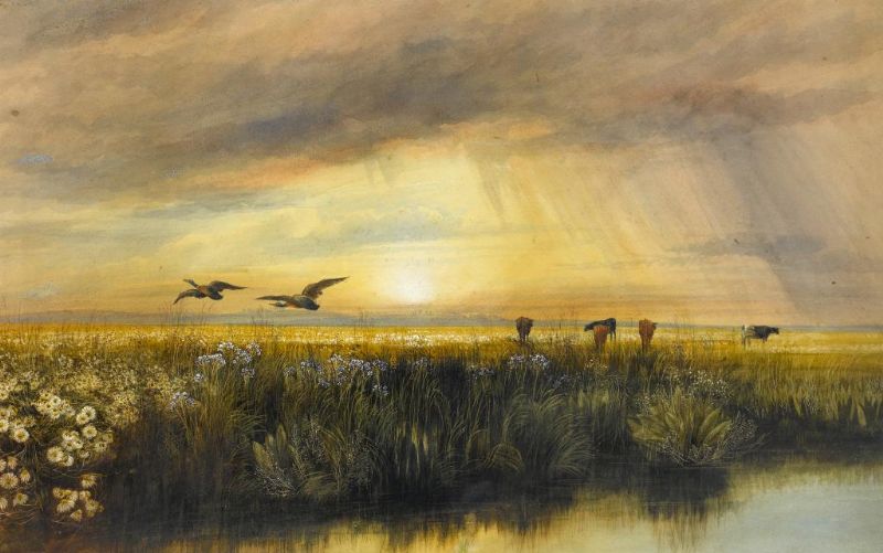 A WATER MEADOW AT SUNSET
