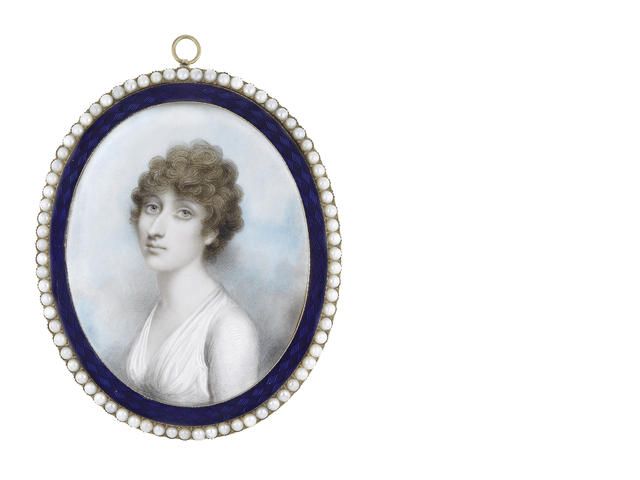 Watercolor on ivory, oval