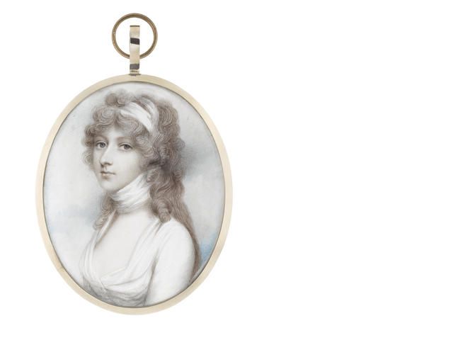| Lady Henriett Don née Cuninghame (d.1801), wearing white dress and matching bandeau wrapped around her neck and loosely curled, | |