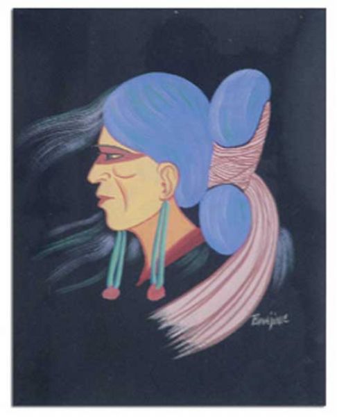 a Navajo maiden in profile on a black background.
