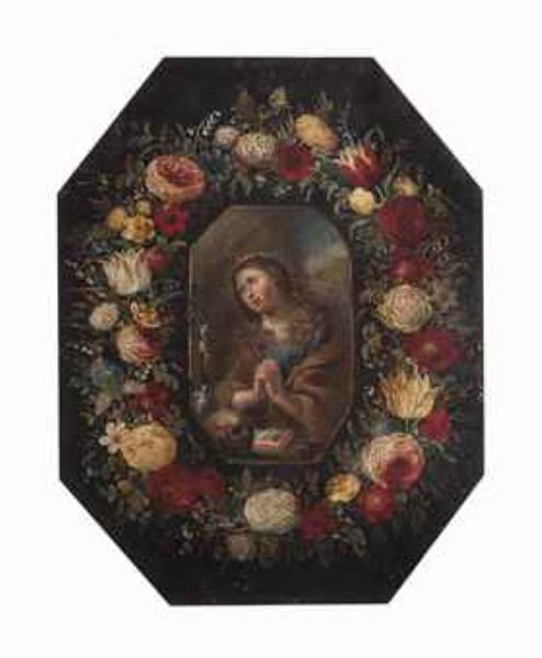 | The Penitent Magdalen, surrounded by garlands of tulips, roses, marigolds, snow drops, irises and other flowers | |