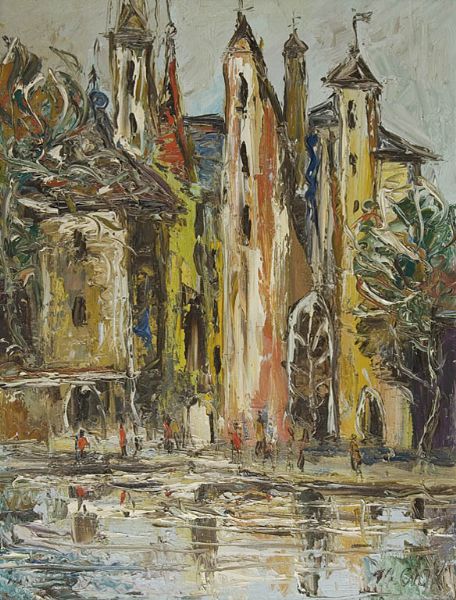 PEJZAŻ MIEJSKI Z GOTYCKIM KOŚCIOŁEM