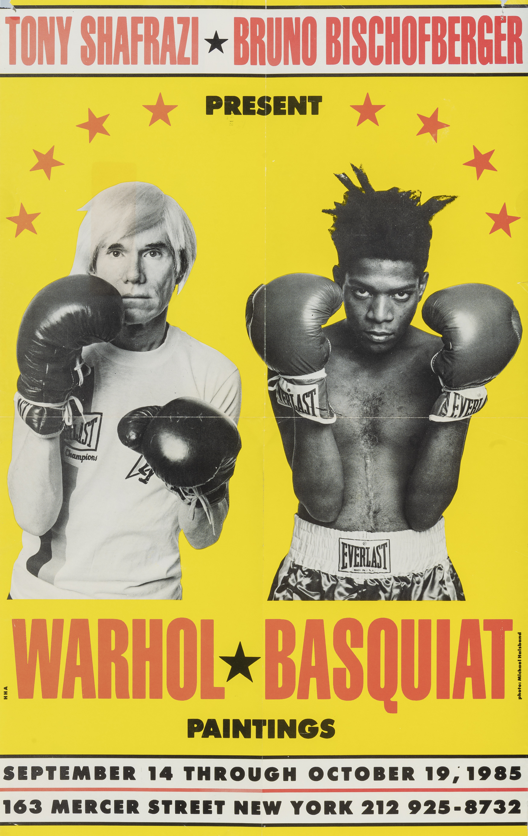 Poster for Warhol * Basquiat Paintings (1985) Edition size unknown Published by Tony Shafrazi, New York and Bruno Bischofberger, Zurich Offset lithograph in colours on coated wove paper, 48.3 x 30.3 cm Provenance: - Tony Shafrazi Galle | |