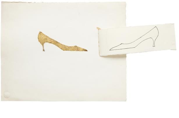 Ink and gold leaf on Strathmore paper, joined with brown paper tape