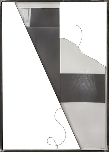 tecnica mista e collage su carte e specchio 80x60 cm, firma in basso a destra, timbri della Galleria Lagorio Arte Contemporanea (BS) al retro.