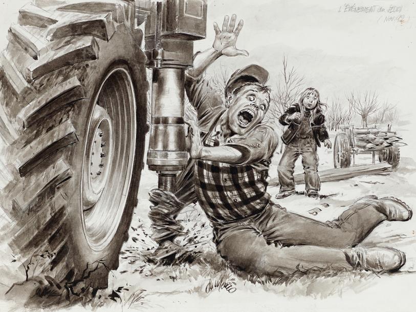 | La foreuse du tracteur enroule sa veste...il est sauvé par sa petite fille | |