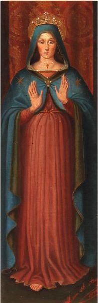 The Virgin Mary in a blue cloak.