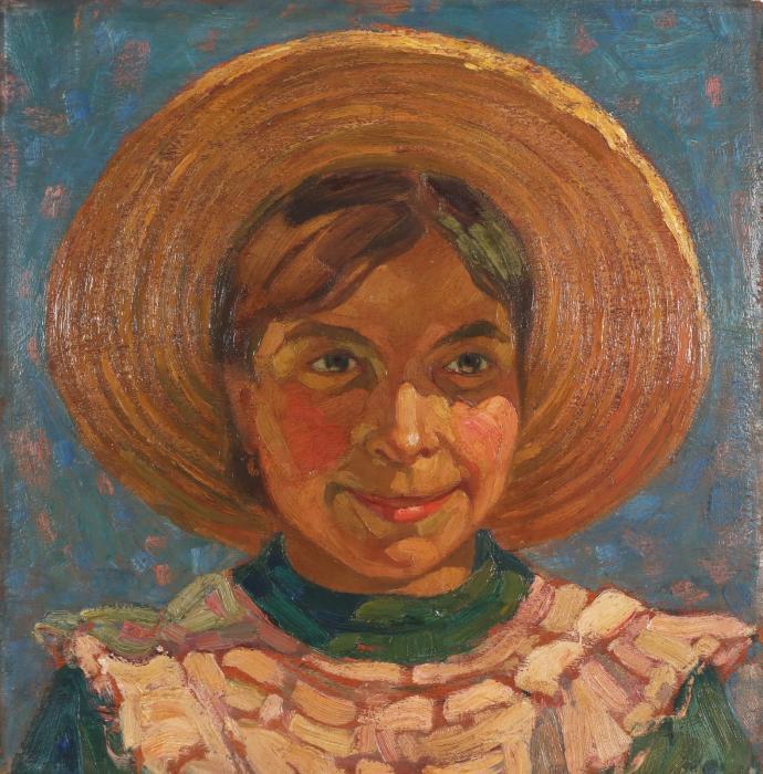 Contadina con cappello di paglia.