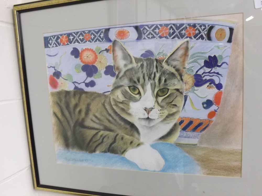 Seated tabby cat