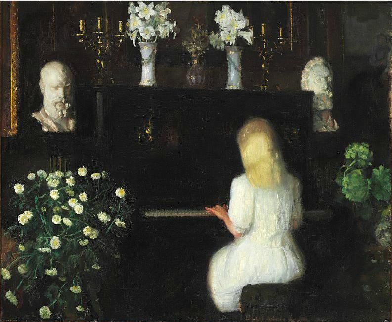 | The painter's daughter Helga at the piano in the family's home on Markvej in Skagen | |