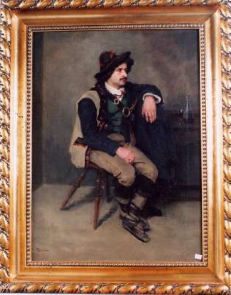 Interieur mit Sitzendem in bäuerlicher Tracht