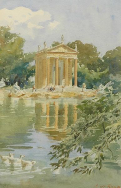 Tempel, motiv från Villa Borghese.